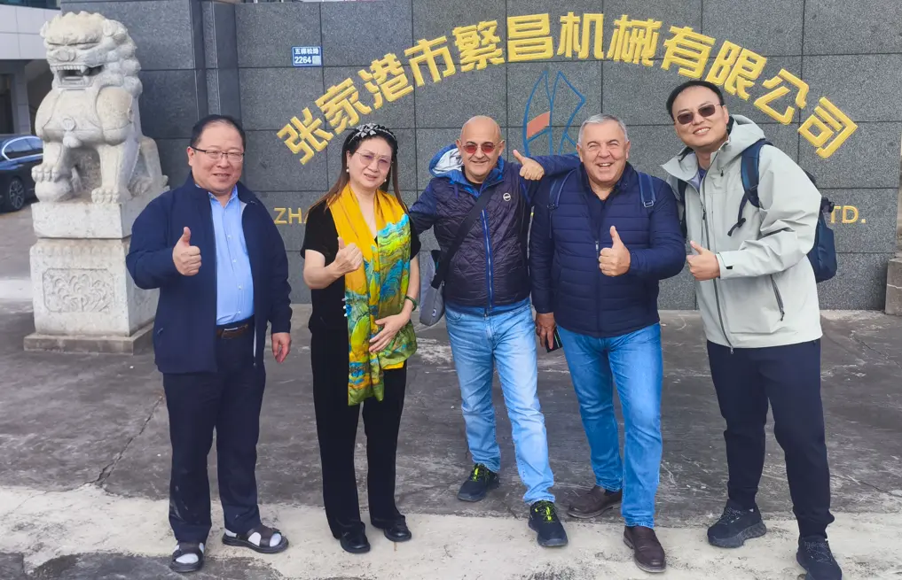 In 2025, the Italian company LAMPLAST SRL purchased two SRLW-1300/5000 fully automatic cold and hot mixed units from our company. The photo shows the two bosses of this company inspecting the finished products at our factory.